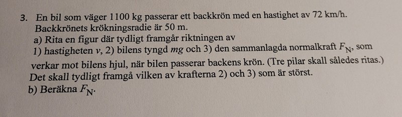 på b) får jag problem. Fres borde peka nedåt då mg är större än FN. FN borde bli: