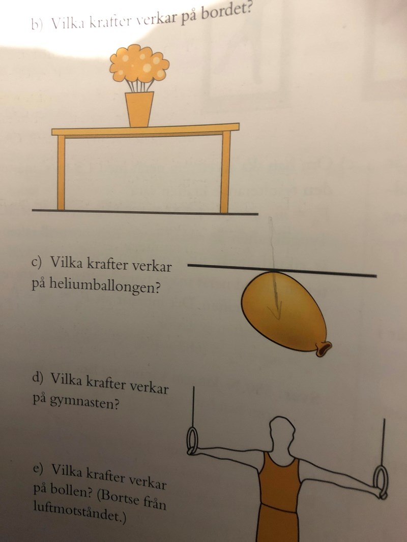 Så står det i facit. Jag inte förstår varför ballongens tyngd (mg) är mindre än jordens dragningskraft (Fn).   Varför är ballongens dragkraft ritat uppåt? Och varför har den just den storleken?