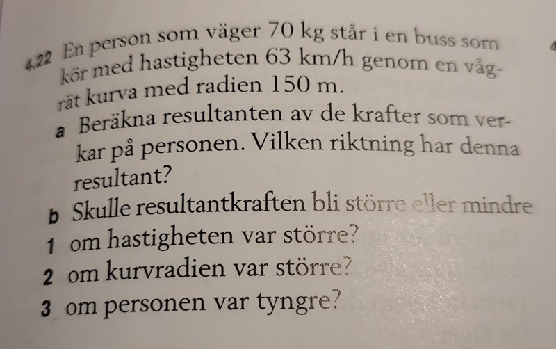 Med hjälp av uppgifterna i texten kan du räkna ur accelerationen a, och sedan kan du enkelt räkna ut Fres, eftersom vi vet personens massa.