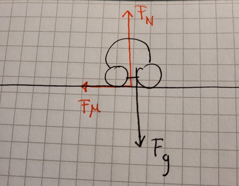 Bussens friktion mot underlaget behöver du inte ha med. Rita personen inne i bussen.