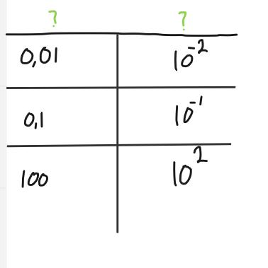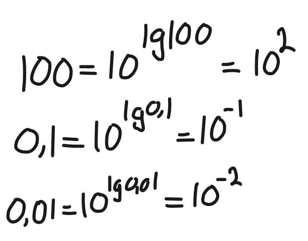 Smaragdalena skrev:Ja, vad är 10-logaritmen av 100, 0,1 respektive 0,01?