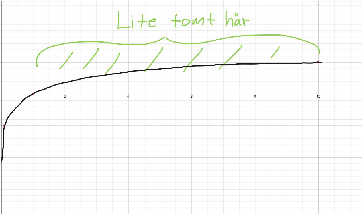 Fick svar att det var OK att köra på känsla där emellan x=1 och x=10 :)