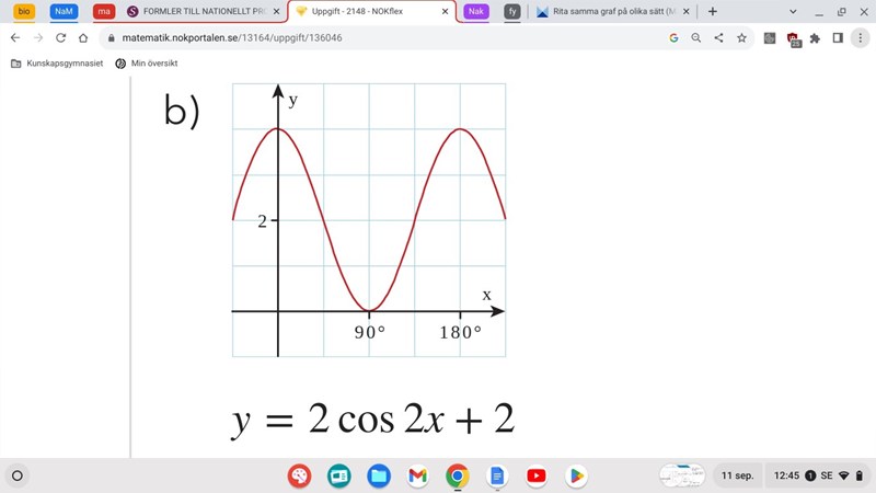 Jag tänker att när x är 0 så är 2cos2*0 = 0 och kvar är 2 därav borde 2 vara y värdet när x är 0