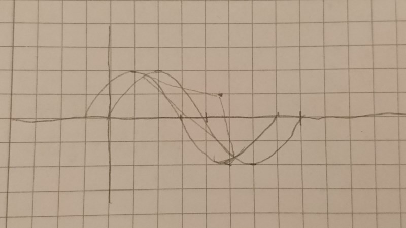 Jag testade att göra en tabell och det blev inte bra eftersom jag då hade utsatt x-värdena själv, och då hände det att just de x-värdena jag hade valt aldrig utgav max- och minimivärdet för amplituden.