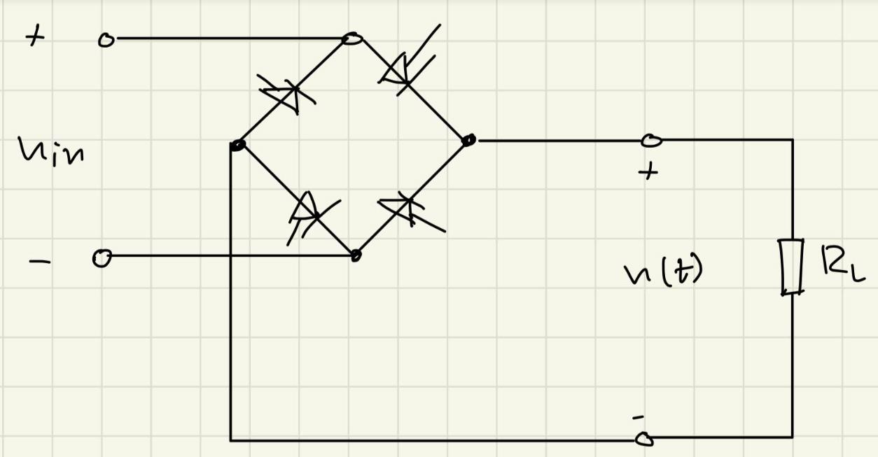 Jag ska rita ett tidsdiagram för spänningen u(t) i kretsen med tyristorer nedan: