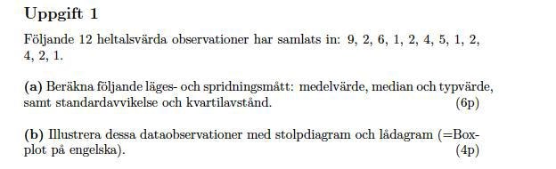 Hehe, alltså hur ritar man (ungefär) stolpdiagram & låddiagram i den här uppgiften?