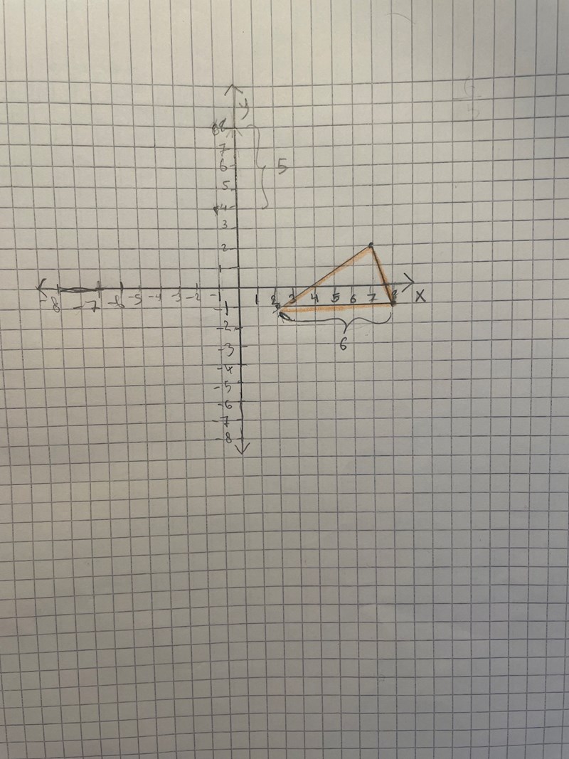 Här kommer jag skriva frågan sen kommer de en bild på frågan som jag har ritat. För koordinatsystem finns en triangel utritad. En ny triangel som är likformig med den Fösta ska ritas in i kordinatsystemet. Den har sin längsta sida mellan punkterna (-1, 4) och (-1, 8), Vilka koordinater kan det tredje hörnet ha? Ange alta möjliga lösningar .