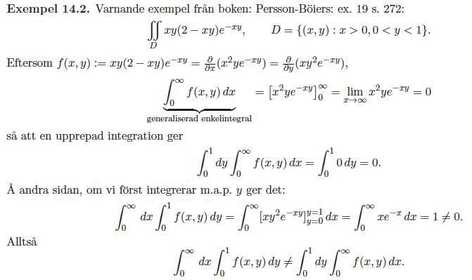 Nja, det där är ett exempel på när integrationsordningen faktiskt spelar roll. Så är inte fallet i din uppgift. Jag har inte koll på detaljerna där, men jag *tror* att det bara är för generaliserade integraler du behöver vara försiktig med ordningen - någon kunnig får gärna klargöra saken. Hursomhelst var det som sagt inte det som var problemet med din lösning, utan att gränser och variabel inte parades ihop rätt.