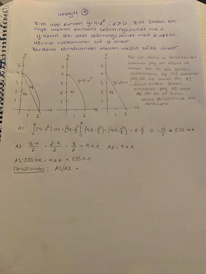 Jag har kollat runt på PA, har hittat denna uppgift som ni har hjälpt andra med. Då är min fundering, de flesta som jag sett räknar A1 samt A2 och för att få fram förhållandet så dividerar man A1 med A2. Det jag tänker annorlunda är att jag vill subtrahera A2 från A1, och då får jag fram A3. Jag tänker att jag vill ha förhållandet mellan A3 och A2 och inte förhållandet mellan A1 och A2. Därav blir min fundering kring sista divisionen om jag gör rätt.