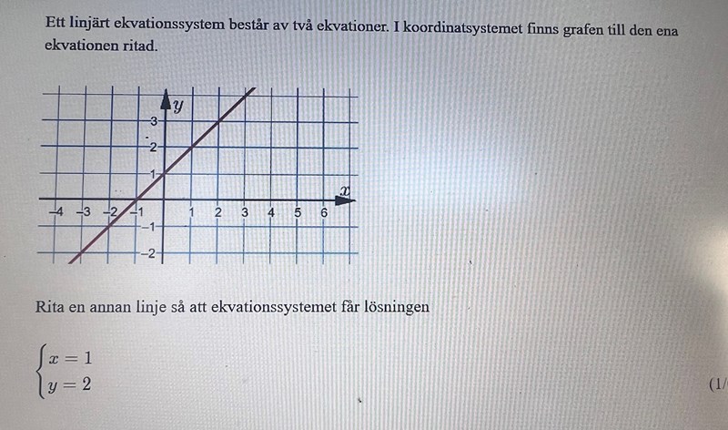 Det skulle vara en annan linje som skär den första i punkten (1, 2).
