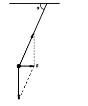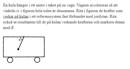 Spännkraften i snöret drar kulan snett uppåt