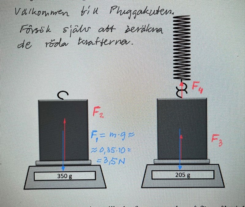 Rita en figur som visar vilka krafter som verkar på föremålet i det senare