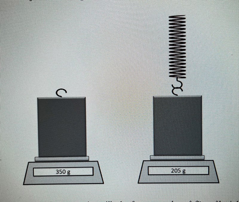 en fjäder. I båda figurerna befinner sig föremålet i vila.