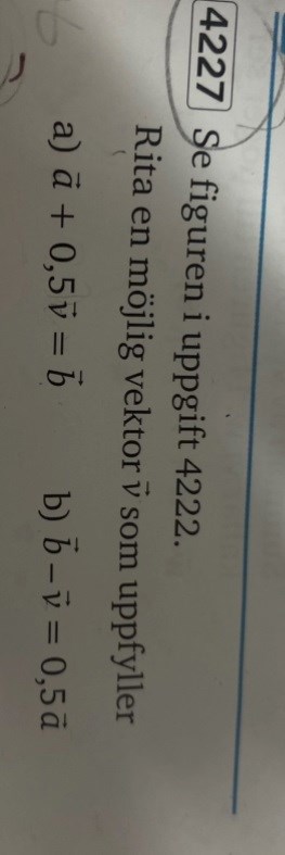 Du har ritat 0,5a. Den är korrekt. Ditt b är dock fel. Den borde istället peka snett upp till höger, precis som uppgiften definierar B.
