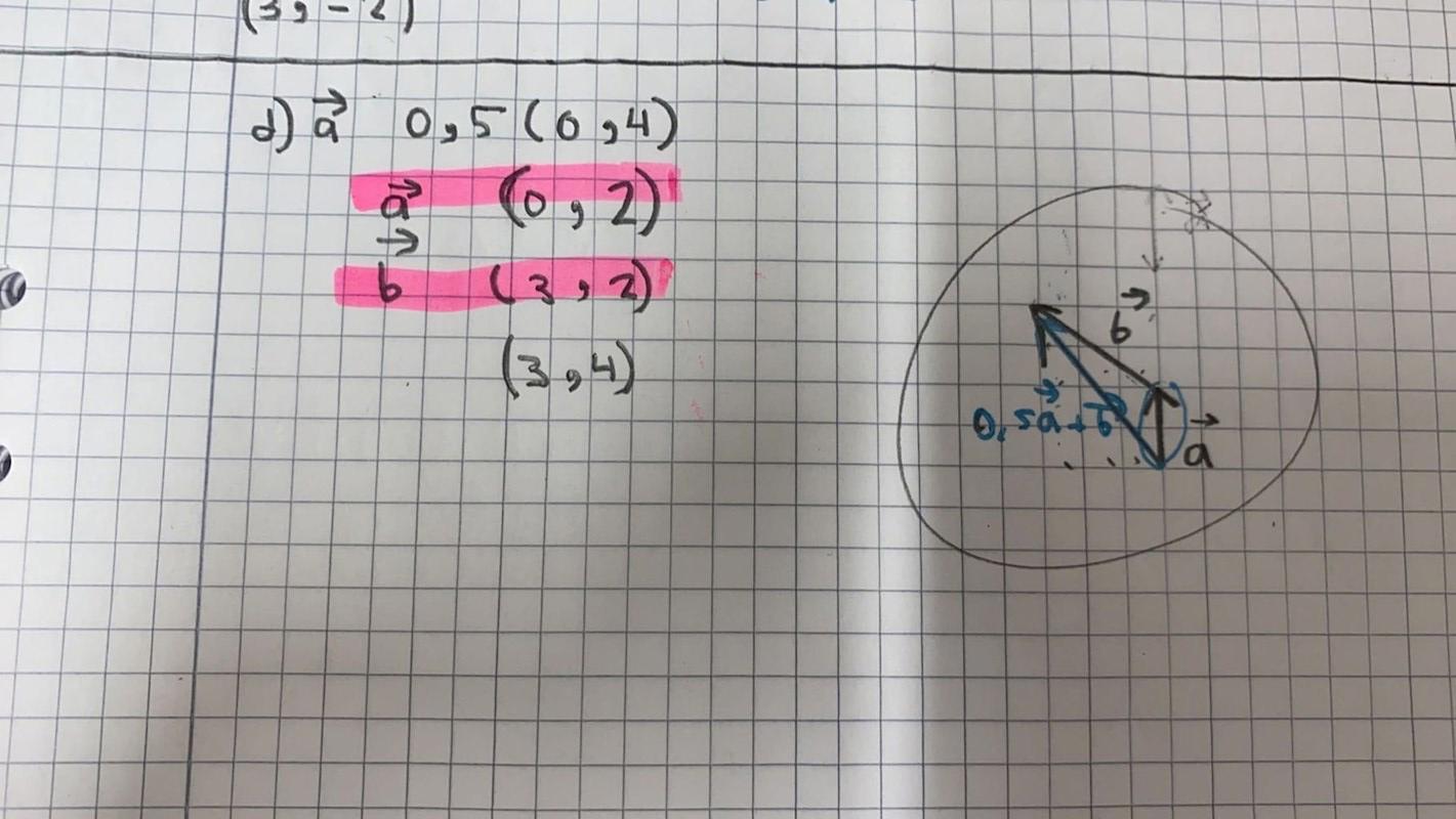 Det är ett halvt a + ett helt B. Använd hur a och B är definierade. Rita ett halvt a och ett helt b från en och samma punkt. Gör ett parallellogram av dessa. Då är summan av vektorerna vektorn mellan hörnen.