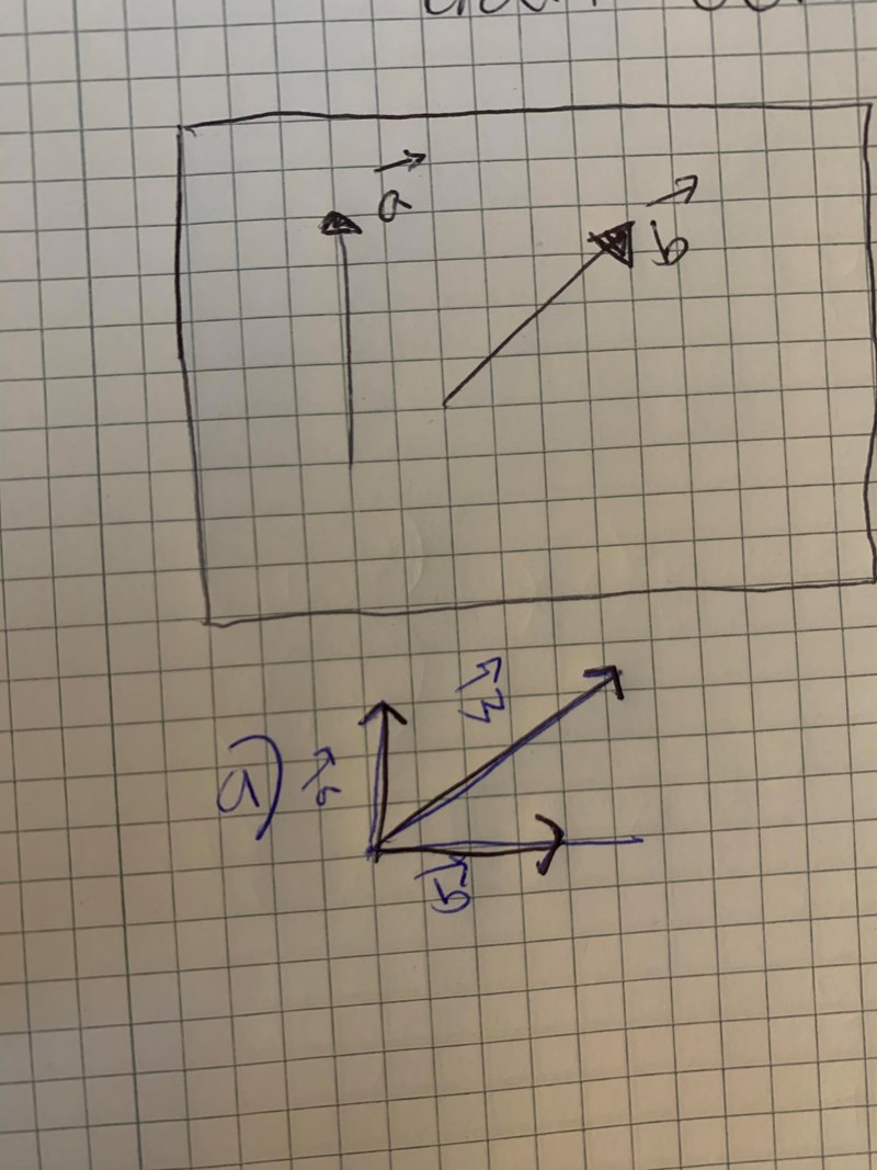 De pilar du har ritat nedanför rutan verkar inte ha någonting att göra med de vektorer som finns i rutan. I rutan har du vektorn a = (0,5) och b = (4;3,5). Nedanför har du a = (0,5;3) och b = (4,0) och en som jag inte kan se vad den heter som är (5,2; 3,5) ungefär.