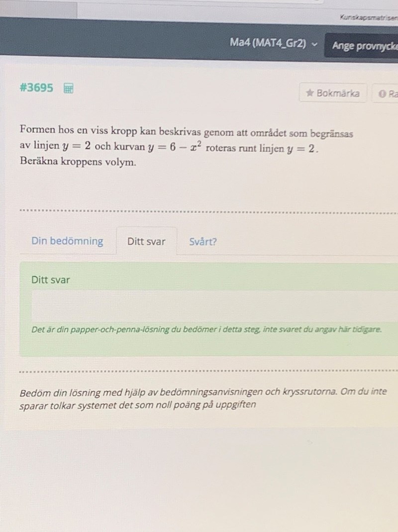Jag skulle rita en ny figur med funktionen y = 6-x2-2 = 4-x2 och låta den kurvan rotera kring x-axeln.