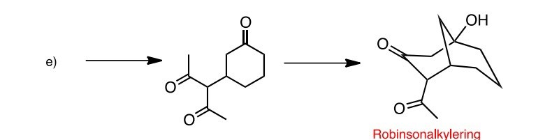 Detta är en del av en reaktion som jag inte förstår. I de flesta reaktioner via enolat har vi fått lära oss att det sker en kondensation i slutet där en vattenmolekyl avspjälkas varvid det bildas en ny dubbelbidning, i varje fall om värme eller en bas tillförs. Detta sker dock inte här trots att det finns möjlighet att rycka ett alfa-väten. Istället upptar syret ett väte och bildar en OH-grupp. Jag undrar varför detta sker och hur man kan förutspå produkten om dessa två utfall är nästan lika möjliga. När sker en kondensation och när sker det inte?