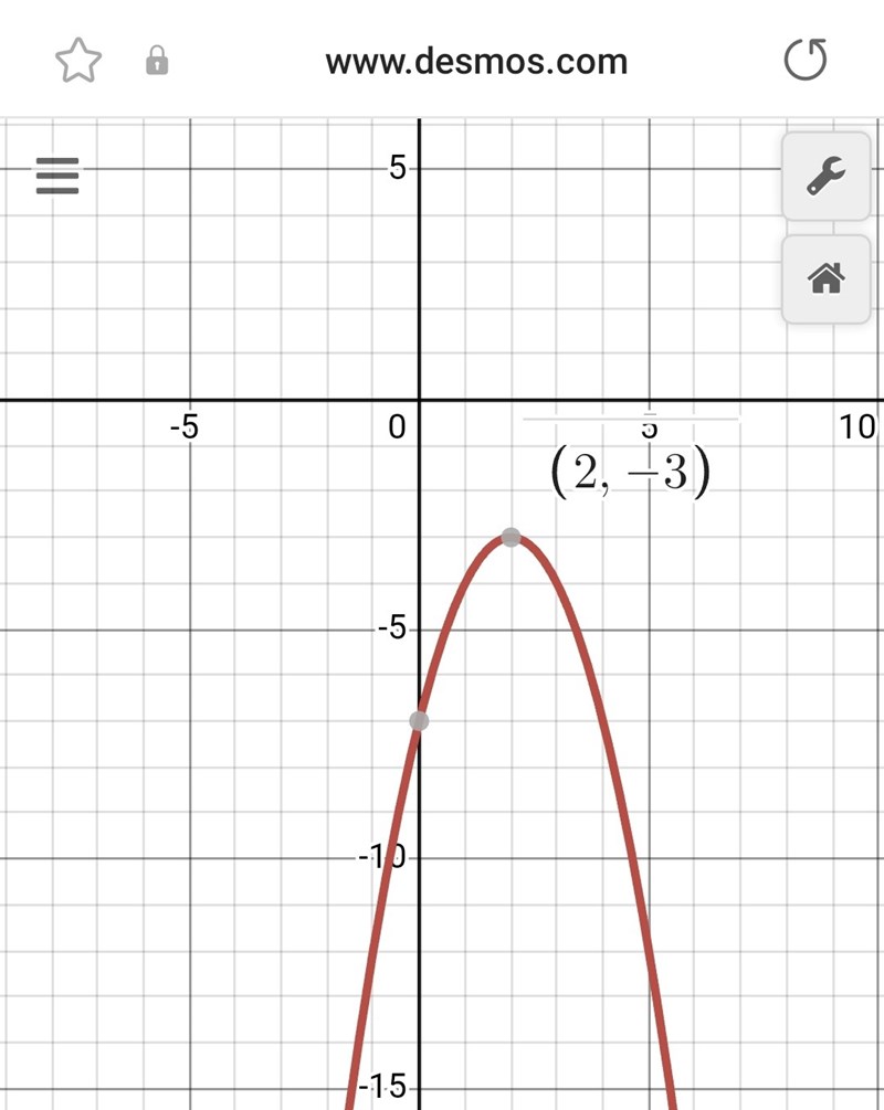 Vi ser att den uppfyller villkoret i uppgiften eftersom den har en maximipunkt vid (2, -3).