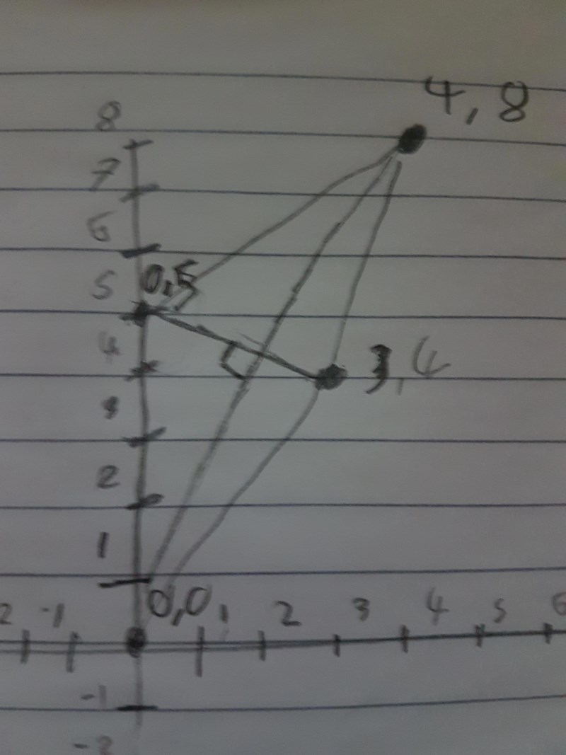 "rita en romb med hörnen i punkterna (0, 0), (5, 0), (3, 4), (8,4). visa att rombens diagonaler är vinkelräta mot varandra."