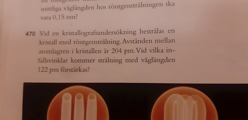 Jag använde mig av Braggs lag: 2d cos(a)=kλ