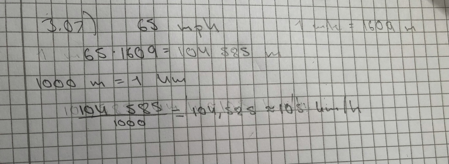 "I Usa anges hastigheten i mph (miles per hour). Vad blir en hastighet på 65 mph uttryckt i km/h och m/s?