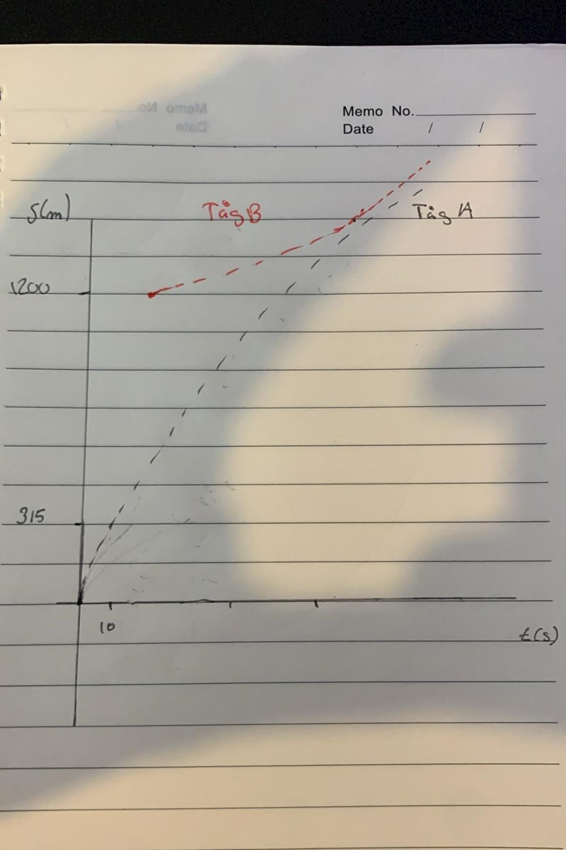 Pieter Kuiper skrev:SaS.. skrev:Nej, tåget B står på 1200 meter vid t=10s.