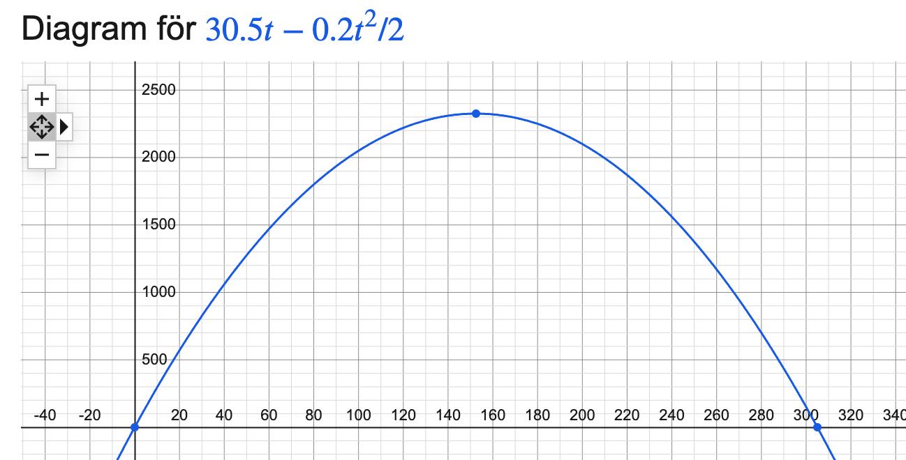 https://www.google.com/search?q=y%3D30%2C5*t+-0%2C2*t%5E2/2Du kan lägga till funktionen för tåg B.