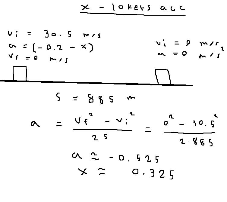 Tåget A har en v=30.5m/s och a=-0.2m/s^2