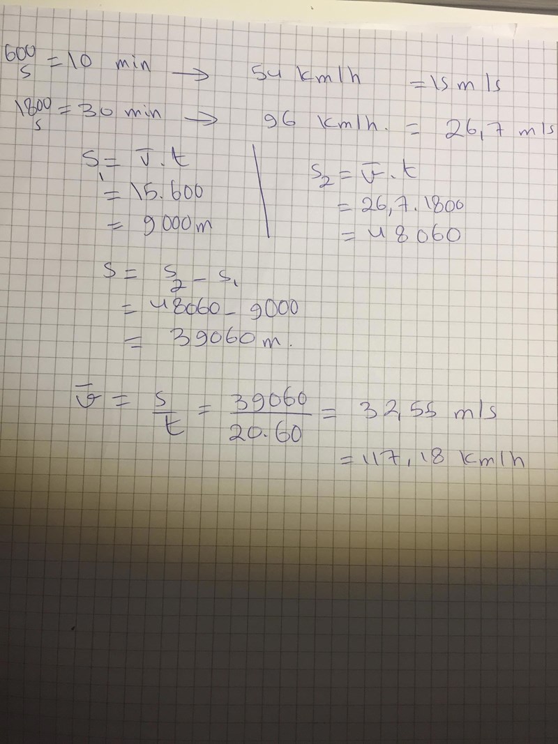 Skillnaden i avstånd är den sträcka som tillryggalades de sista 20 minuterna. Hur stor var då medelhastigheten under denna period?