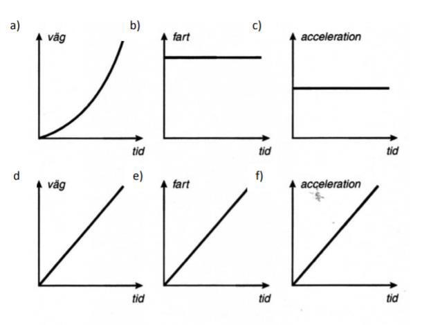 "Några av diagrammen nedan beskriver en och samma rörelse, vilka och vad kallas rörelsen?"
