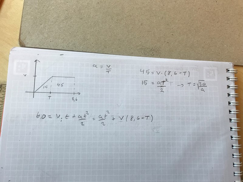Tack för svar! Jag gjorde så, men vad ska jag försöka lösa ut nu? Är det tiden eller accelerationen?