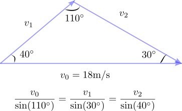 Räkna ut komposanter utifrån dina värden på hastigheten och addera.