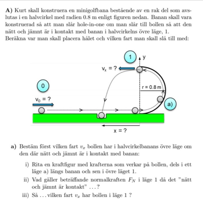 Men är det inte sant att när banan tar slut då finns ingen normalkraft längre? Vad har hastigheten och göra med detta? Är inte hastigheten konstant i banan? Och om cirkeln var hel skulle inte bollen fortsätta snurra och inte tappa kontakt kraften FN? Jag fattar inte..