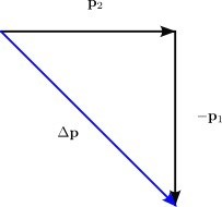 Rörelsemängden är från början riktad åt rakt uppåt.