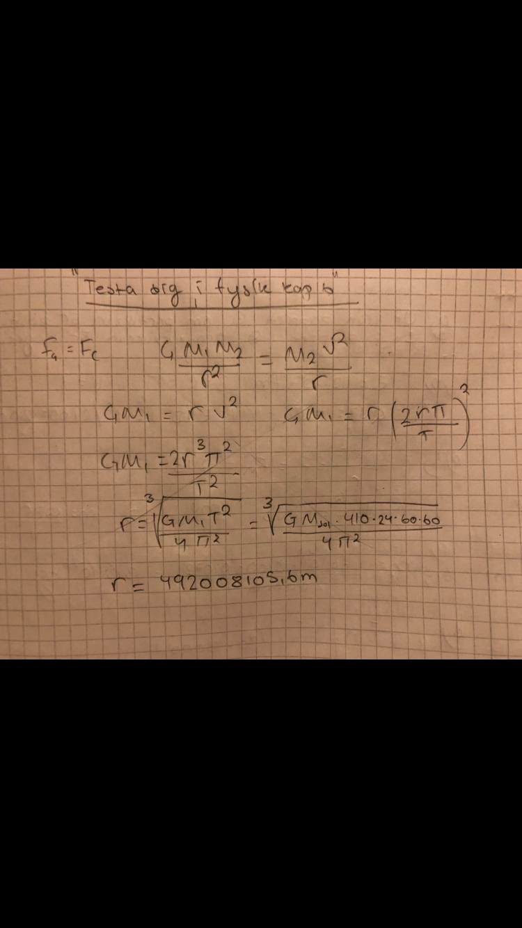 Då är jag med, jag tänkte för mycket på vad du skrivit snarare än vad som bör vara rätt. Hursomhelst, 1.6E11 är svaret i meter. Antagligen är svaret i facit givet i km.
