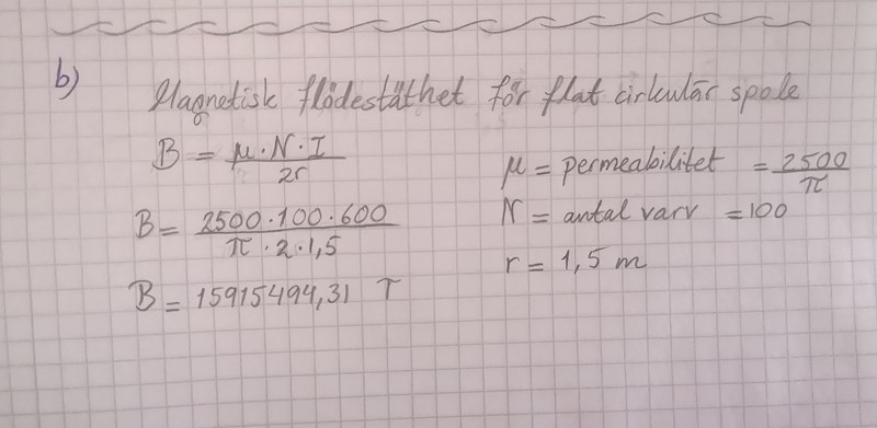 Edit: jag tror här gäller ett annat samband för magnetiska flödestateten, men varför får jag fel svar😨.. (20 T i facit)