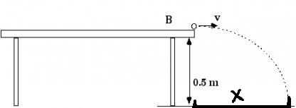 Eftersom detta kan variera sätter vi den horisontella sträckan (enbart i x-led) som kulan färdas från bordskanten tills där den träffar marken som X.