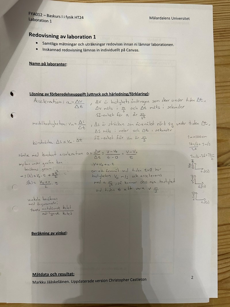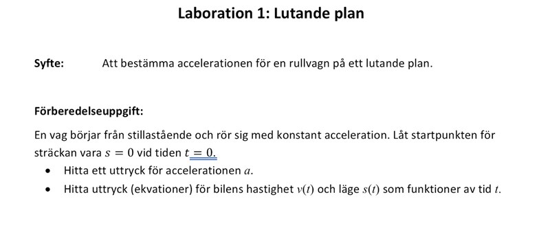 Det kanske också framgår i laborationsinstruktion, vilka samband man har nytta av för att utföra labben.