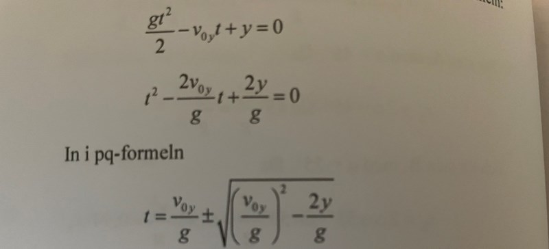 Men på den andra är det ju ett t mitt i ekvationen och man får två värden på t? Finns det inget annat sätt att lösa ut t ur ekvationen?