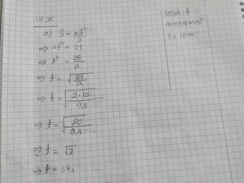 Det är ingenting som behöver testas. Sätt in t = 2 och t = 1 i formeln s=at2/2s=at^2/2 och beräkna skillnaden. Så långt har stenen fallit under den andra sekunden.