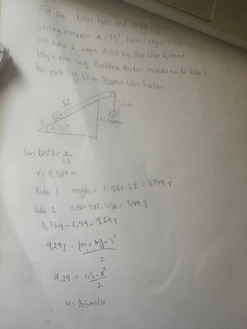 Kan någon förklara för mig varför kula 1 motsvarar hela potensiella energin för både och varför man måste subtrahera de från varandra som det står
