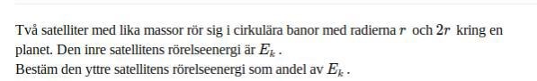 Jag känner mig lite vilse. I lösningen har man börjat med att sätta att gravitationskraften och centripetalkraften är lika stora för båda, men hur kommer det sig? Det är ju olika radier vilket medför olika verkande krafter.