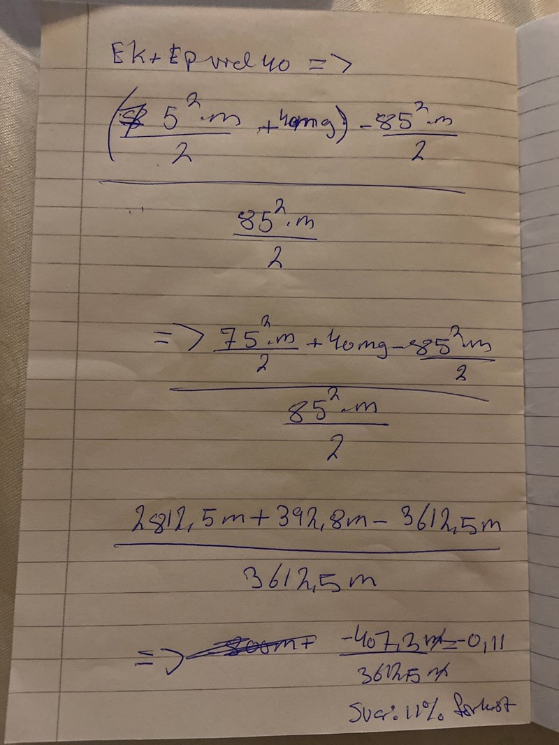 Tydligare om du tar ((Ek + Ep vid 40m) - Ek vid 0 m) / (Ek vid 0 m), det ger förlusten (negativt tal)