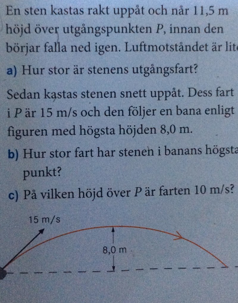 Fråga nummer två är: hur ska jag lösa uppgift b). På uppgift a) använde jag sträckformeln och formeln för hastighet för att lösa uppgiften men nu vet jag ej vad jag ska använda mig utav.