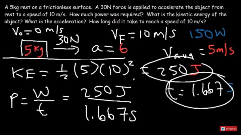 Det står att föremålet accelereras till en hastighet på 10 m/s. De frågar efter vilken kinetisk energi (rörelseenergi) föremålet (då) har, dvs vilken kinetisk energi föremålet har efter accelerationen.