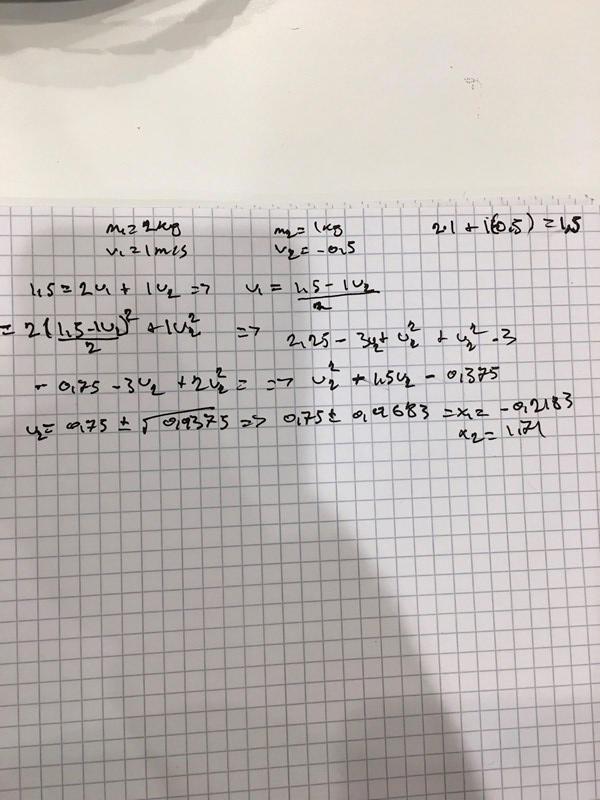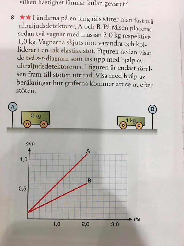 Hastigheterna före kollisionen borde vara 0,5 och 0,25 i stället. Hur blir det då?