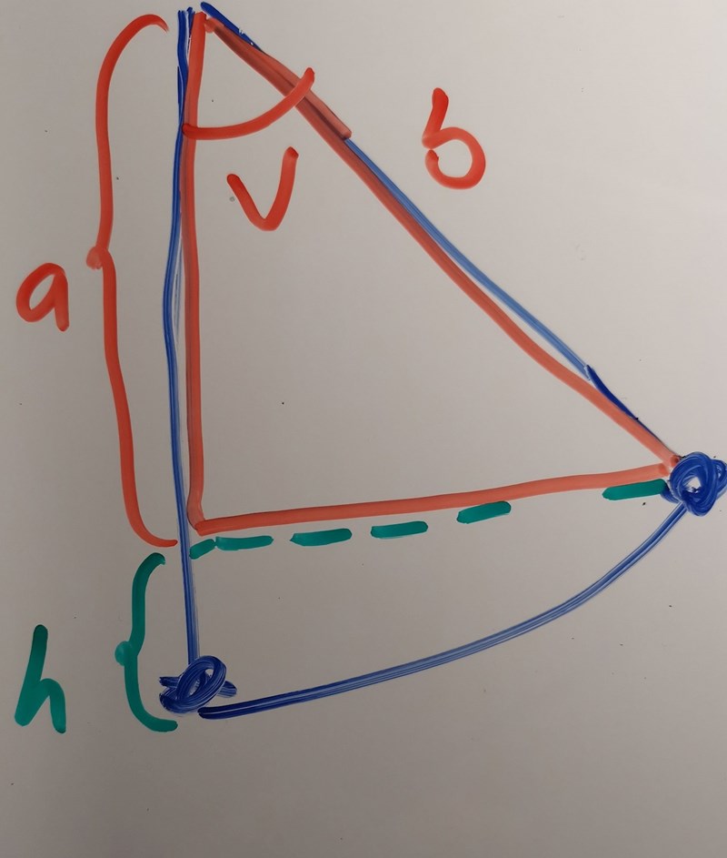 hur lång är kateten a och hypotenusan b? h är den höjdskillnad som du beräknat tidigare.