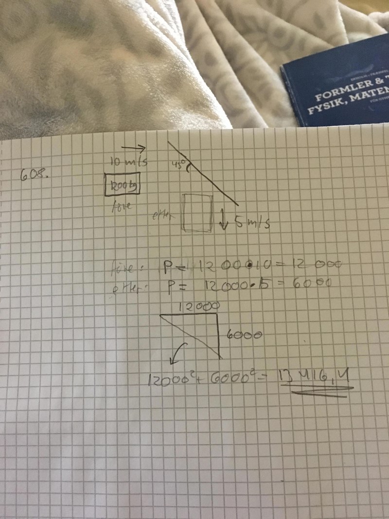 En hemsida sa att hypotenusan av de två riktningarna skulle bli svaret, men då skulle förändringen av rörelsemängden va större (13 416,4) än den va från början (12 000) och förstår inte hur det skulle gå till. Samtidigt var jag förvånad över att rörelsemängd har en riktning?
