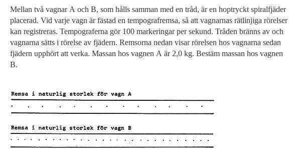Du kan se från remsorna hur många gånger fortare den ena vagnen rör sig än den andra. Du får ett värde på v1/v2.